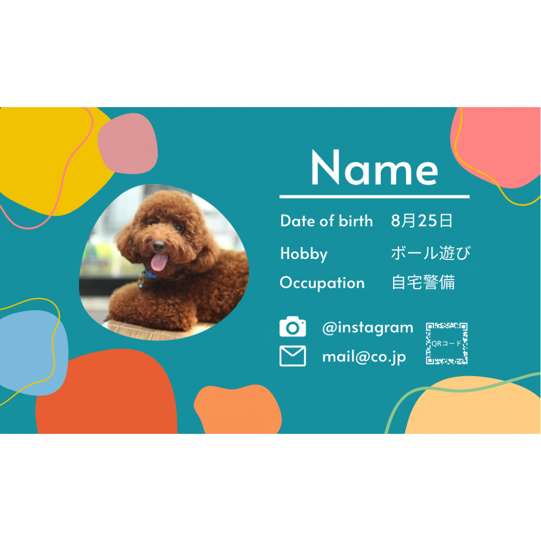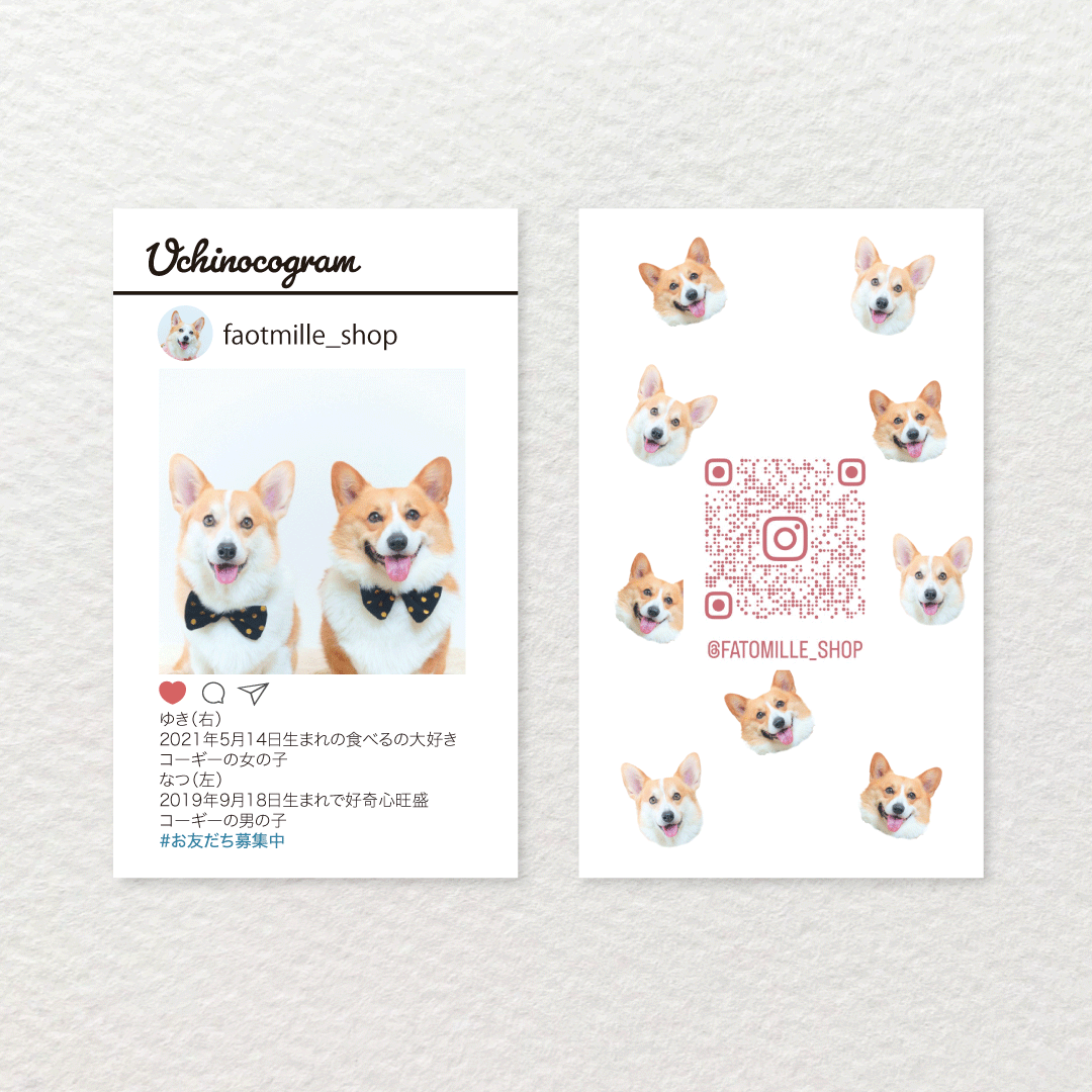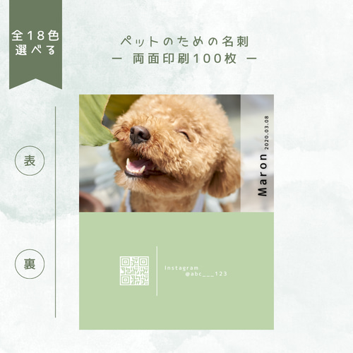 うちの子・ペット名刺 多頭向け 写真入り インスタグラム名刺 QRコード無料 送料込品質両面100枚 オフ会に 旗横おもちゃ・ペット小物ワントニア 通販 16949854Creema クリーマ。