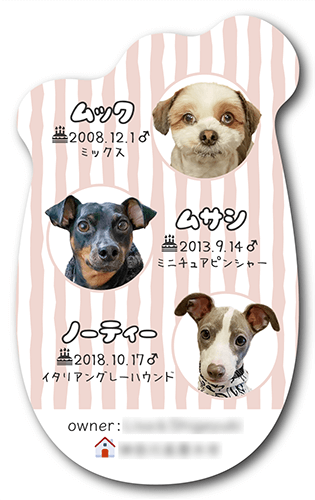 ペット名刺の制作実例犬 多頭飼い3頭 の型抜きペット名刺w_cut0038。