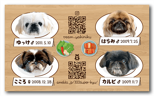 ペット名刺の制作実例犬 4頭多頭飼い の両面ペット名刺w_rec0035。
