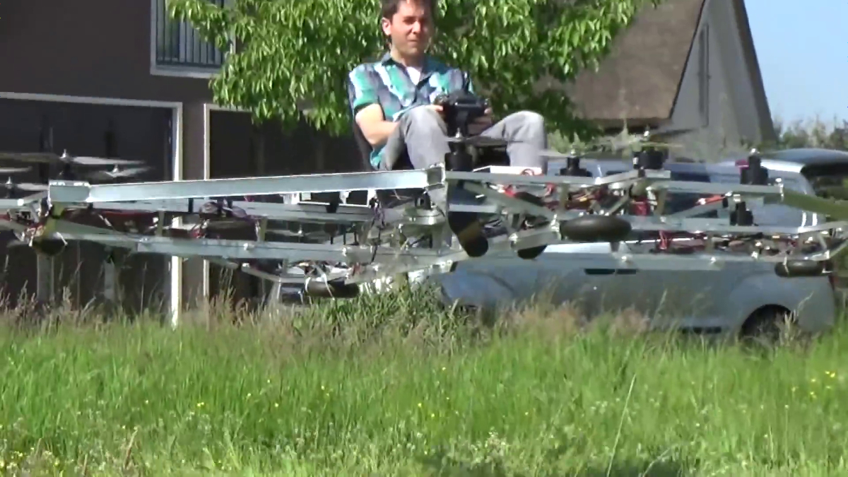 人を乗せて実際に飛び上がれるドローンが浮上する様子が公開、一体どうやって設計したのか - GIGAZINE。