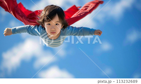 空を飛ぶ家族 20037003363 の写真・イラスト素材アマナイメージズ。