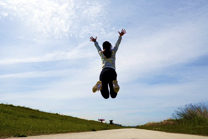 元気よく飛ぶ人 - 人物イラスト無料素材。