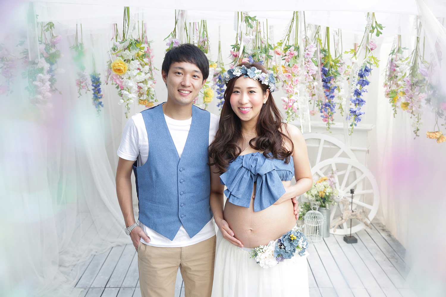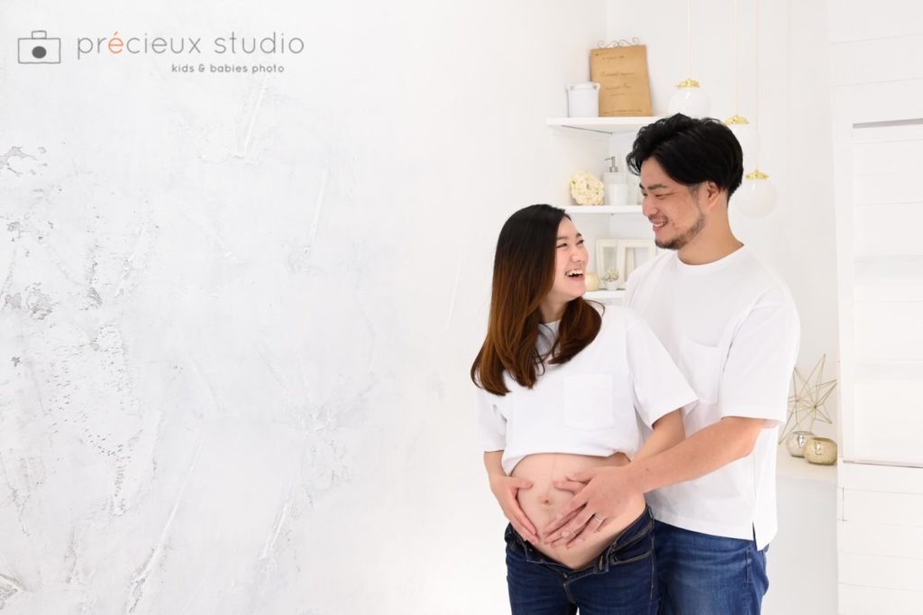 夫婦でマタニティフォト!旦那さんと2人で撮る安産祈願写真のポーズ&アイデア プレシュスタジオ。
