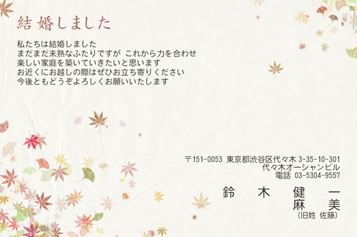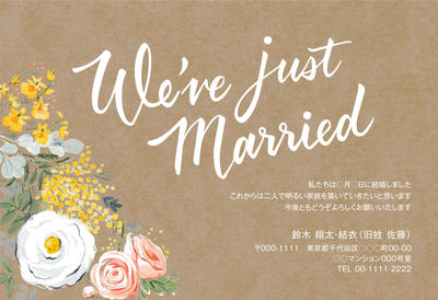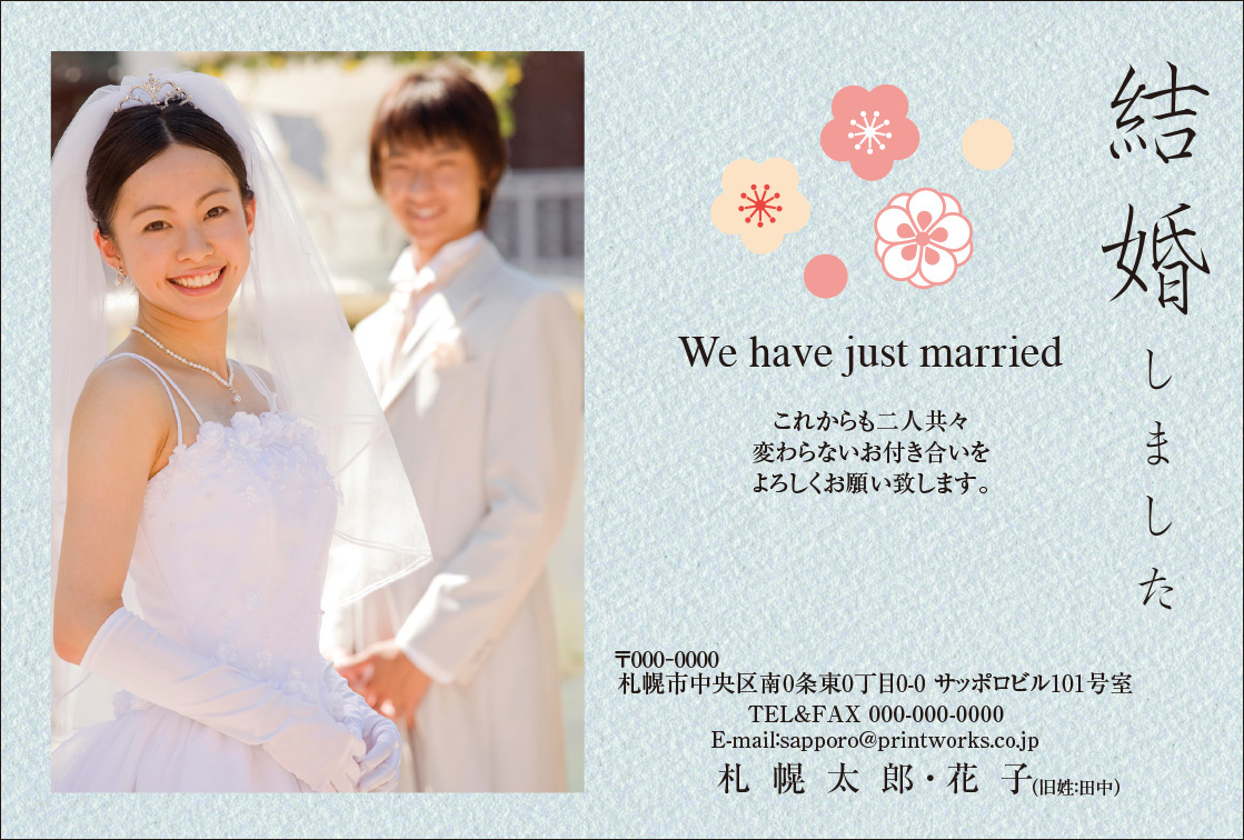 結婚報告はがき印刷:写真なしデザイン専門店 アルファプリントサービス。