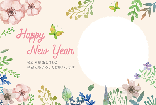 結婚報告年賀状オシャレで可愛いテンプレート・登録不要で無料ダウンロード - 登録不要のフリーテンプレート。