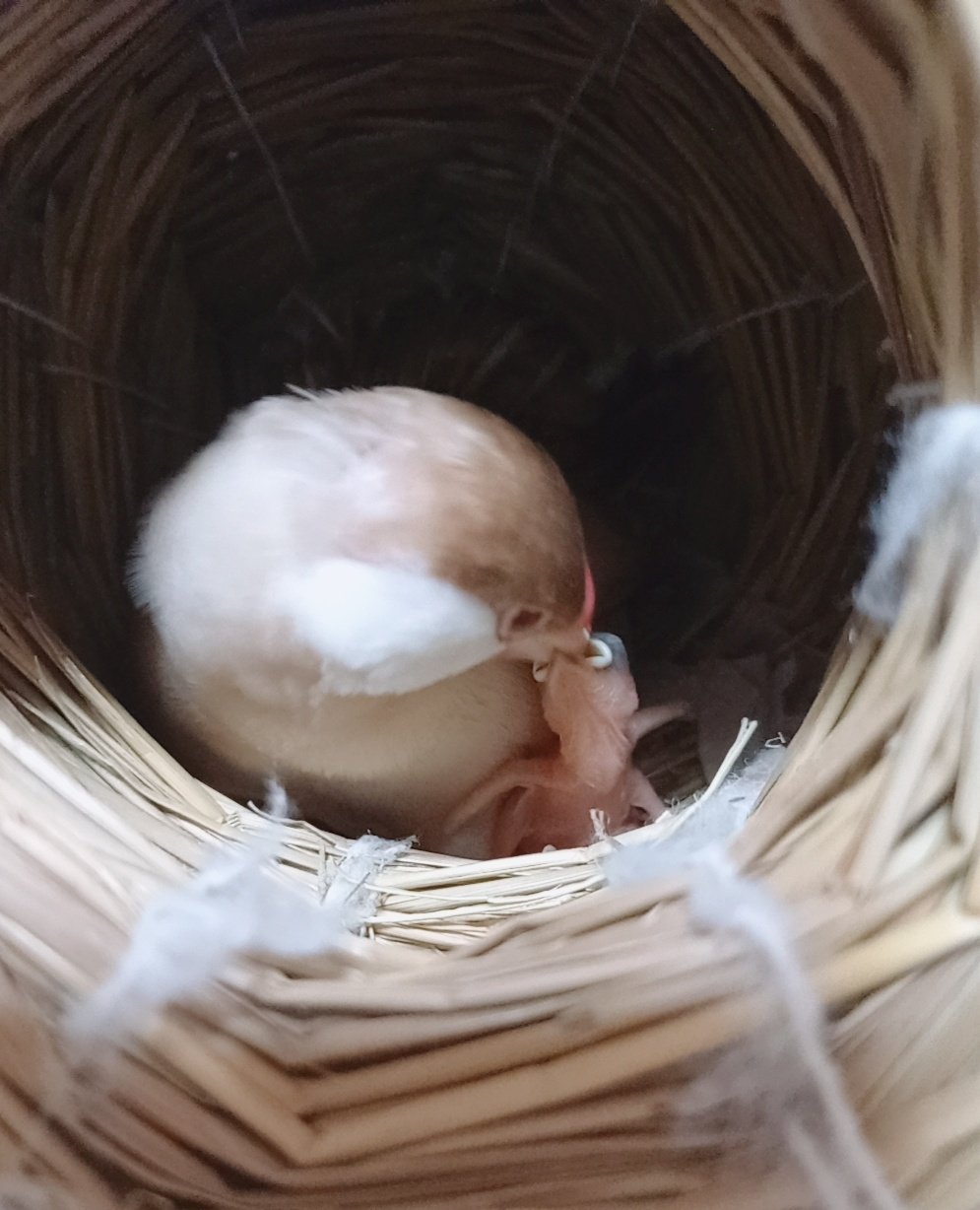巣作りするシルバー文鳥の マメちゃん。いーくんのテキトーブログ。