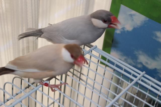 繁殖の時期ですね❤シナモン文鳥とシルバー文鳥Java sparrow 1625。