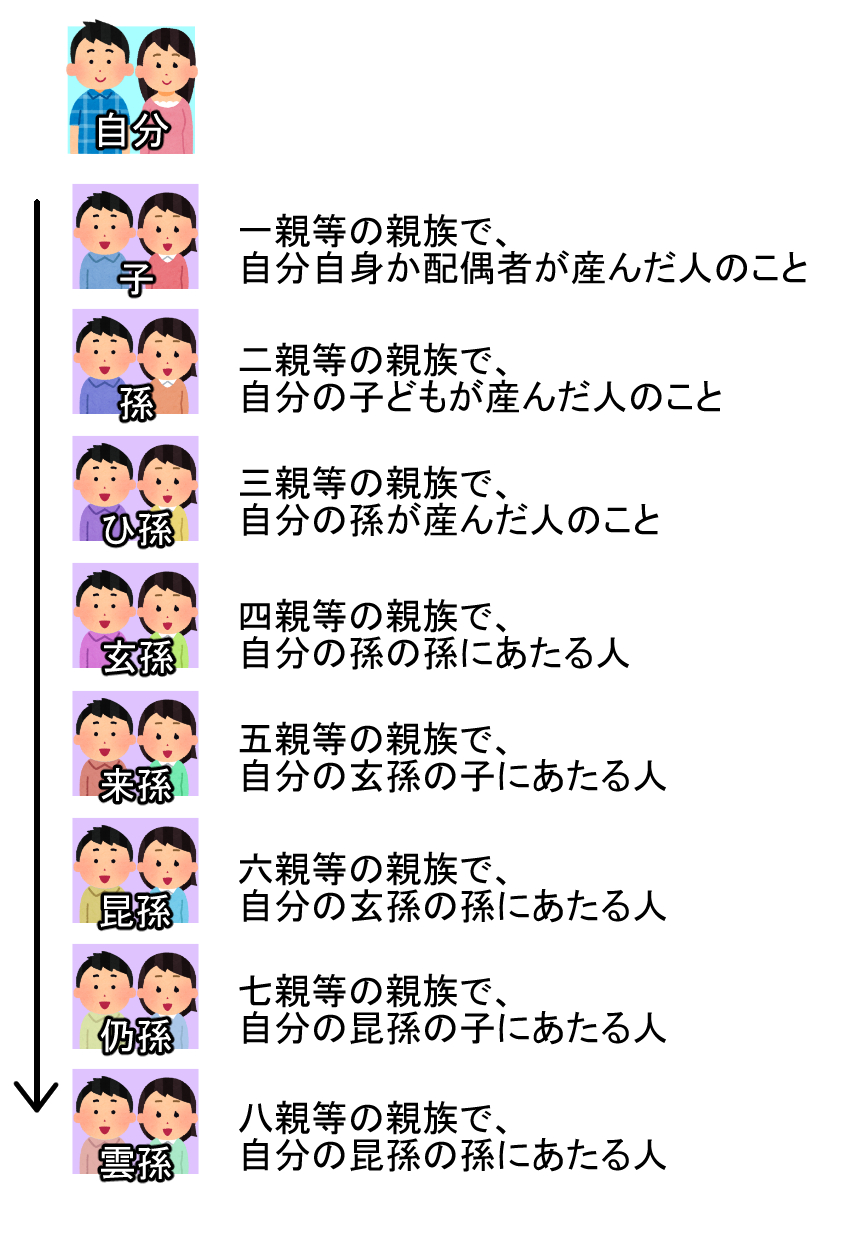 続柄一覧図 子→孫→ひ孫の次は?父母→祖父母→曾祖父母の次は。