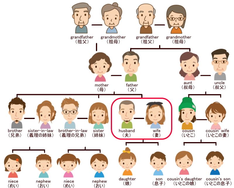 図解 「親戚」は英語で?家族や親戚のメンバーの呼び方20選 - 英会話ハイウェイ英会話、海外生活・留学に関する情報が満載のメディア。
