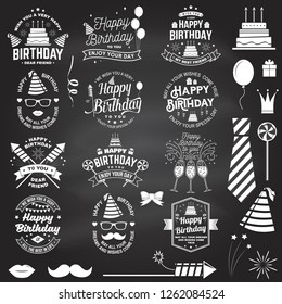 手書き黒板テクスチャでハッピーバースデー レトロなラベルのベクトル チョーク タイポグラフィ図。文字構成のイラスト素材・ベクター Image36853236。