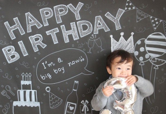 キッズのバースデーパーティーにも大活躍の黒板、チョークアート DIY.Birthday.chalkboard。