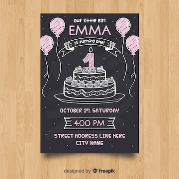最初の誕生日の黒板のケーキのカードのテンプレート無料ベクトル素材。