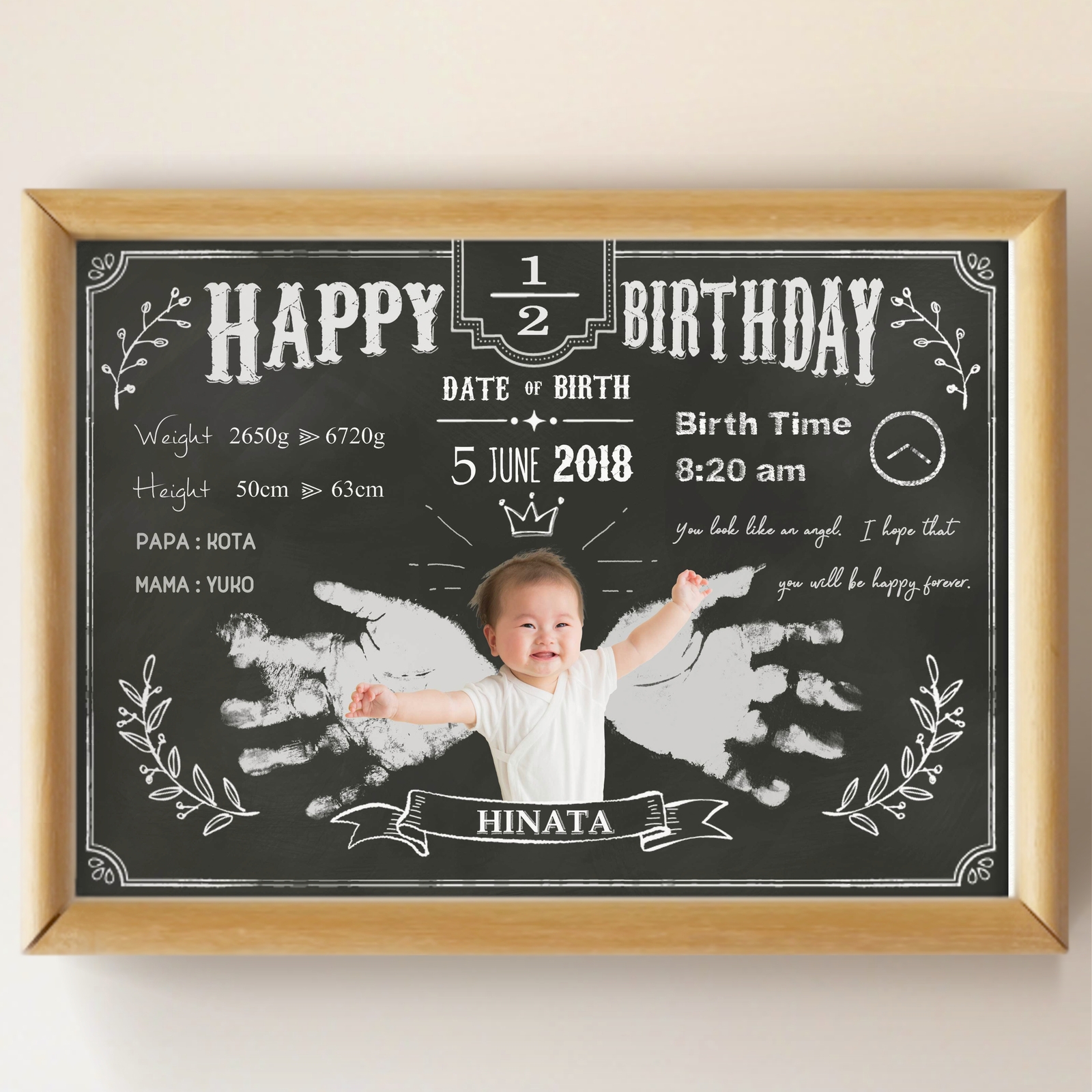 黒板チョークアート風~手形アートポスター☆1歳誕生日 ハーフバースデー 誕生記念に☆ - shop DEAR Youminne byGMOペパボ国内最大級のハンドメイド・手作り通販サイト。