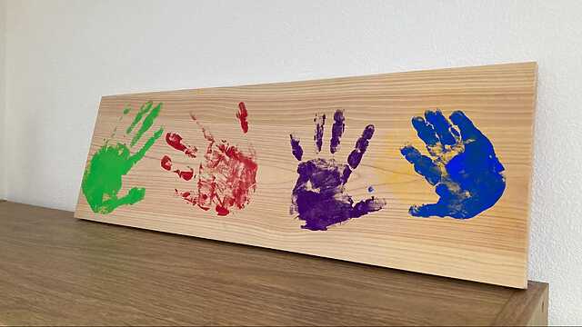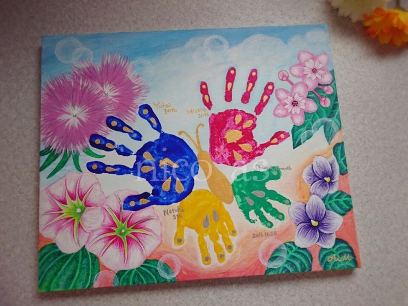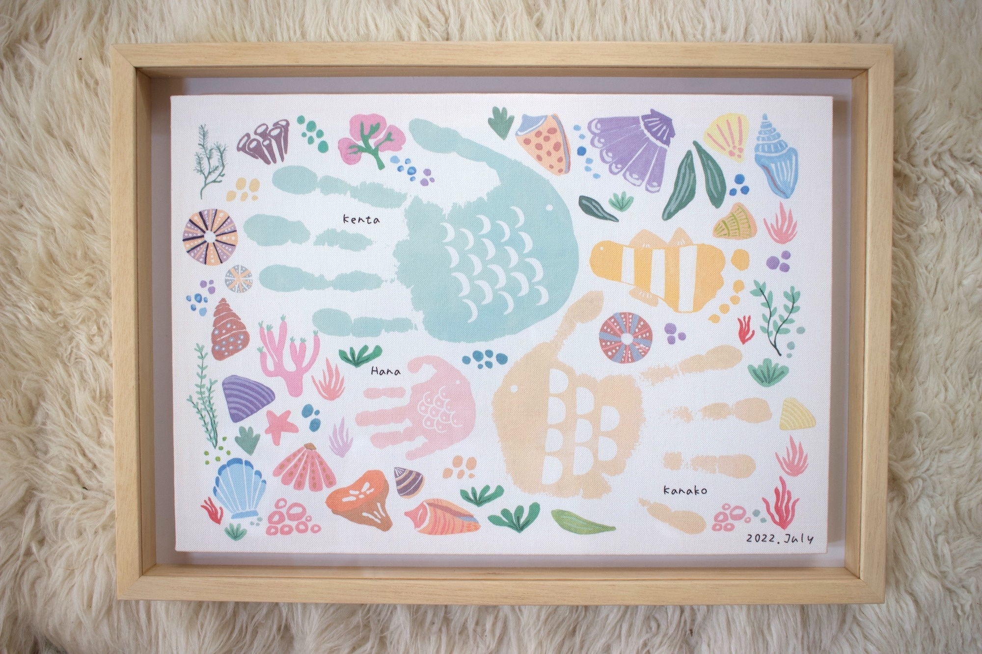 おしゃれな手形アート 家族の手形で大切な宝物に手形足形アートラクガキアートパネルのチルアート。