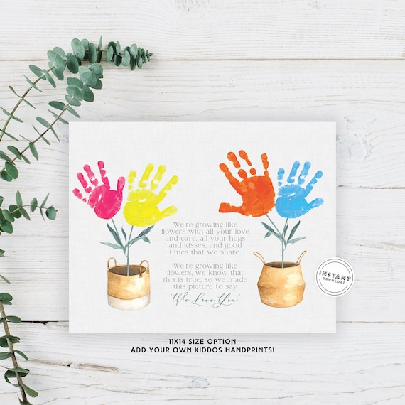 4 人の子供たち、私たちは花のように成長しています 手形アート子供向けの手形クラフト幼児向け母の日ギフト祖父母への記念品ギフト -Etsy 日本。
