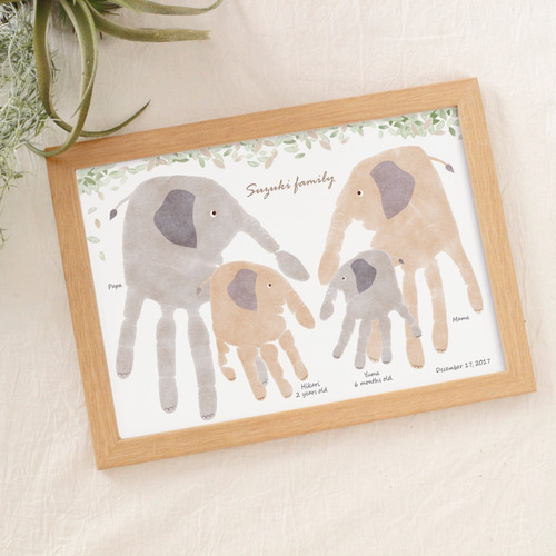 オーダーメイド 手形アートパネル-親子ぞう家族の手形でおしゃれなメモリアルグッズとくべつをつくる雑貨店。