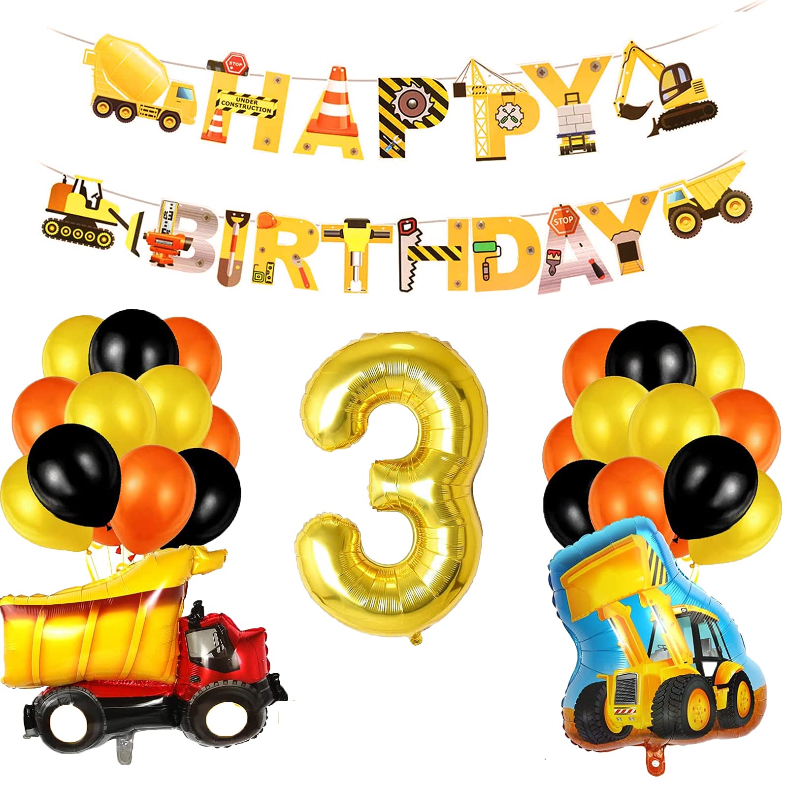 Amazon数字3 誕生日 飾り男の子 バースデー 飾り バルーン 働く車 工事 車 面白い 可愛い ケーキトッパー 子供 男の子 イエローオレンジ 3歳 happy birthday ガーランド バルーン 風船 テープ リボン セット風船・バルーンおもちゃ。
