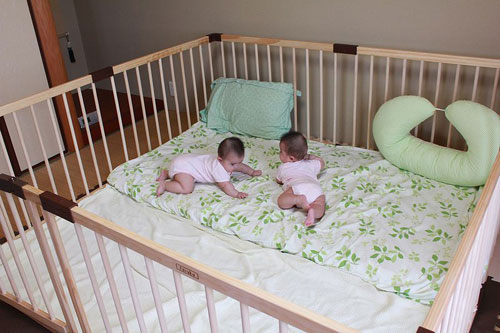 双子育児居場所づくり③ ベビーベッド卒業後、ベビーサークルデビューしました!気楽にツーオペ育児。