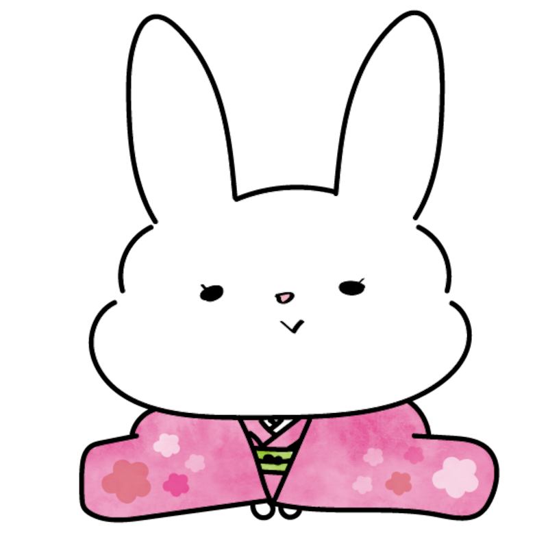 2023年 卯年 おしゃれでかわいい年賀状デザイン無料配布❁2 うさぎの着ぐるみ 横momochyのおうちイラストレーターももちーのWebサイト。