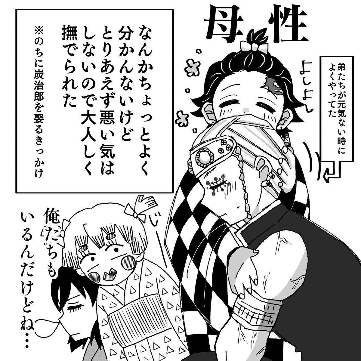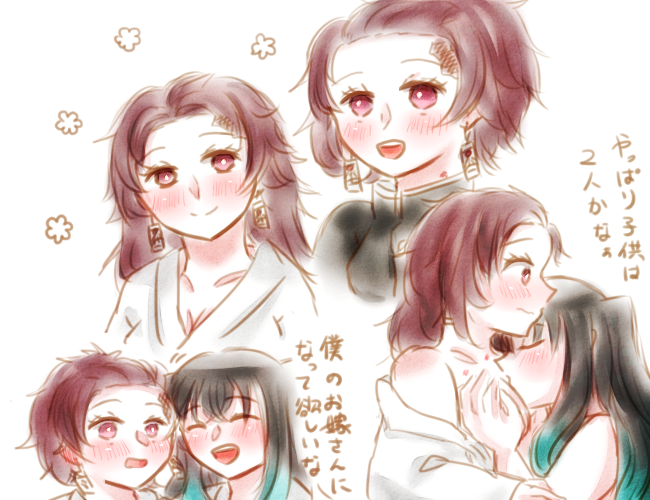 さな on X: "時炭♀家族 小話書こうと思って描いたけど、結局他の書いてそのままになってたやつ。長男は昔泣き虫で、長女は甘えたで色んな意味で強い。 むいパパはたんじろママ一番で、子供に隠れてこっそり甘えてるけど結構バレてる˘ω˘https:t.co Pjz2s1g0dS"X。