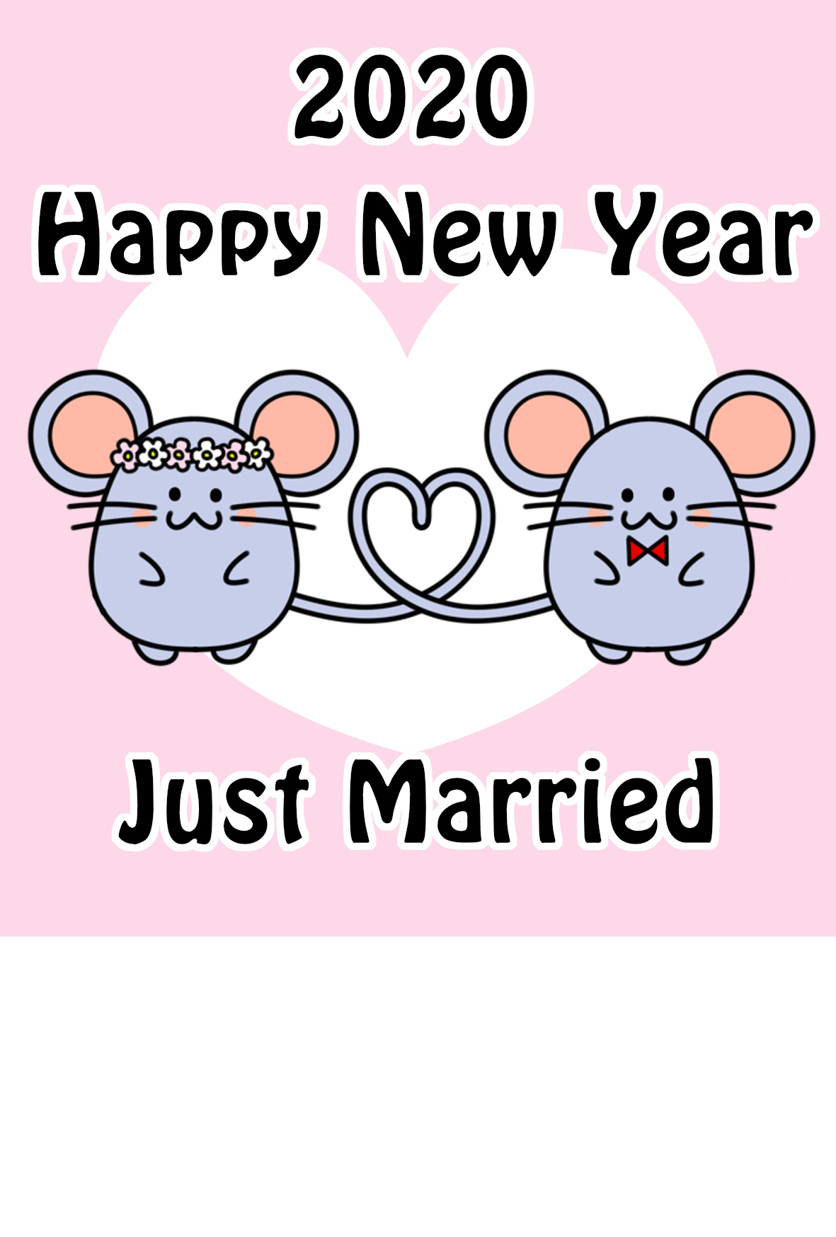 2020年 年賀状結婚報告 写真なしねずみイラストの無料テンプレートかくぬる工房。