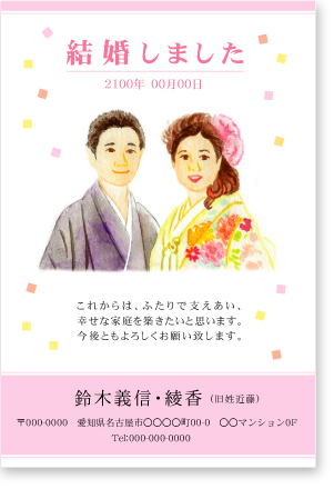 結婚報告年賀状オシャレで可愛いテンプレート・登録不要で無料ダウンロード - 登録不要のフリーテンプレート。
