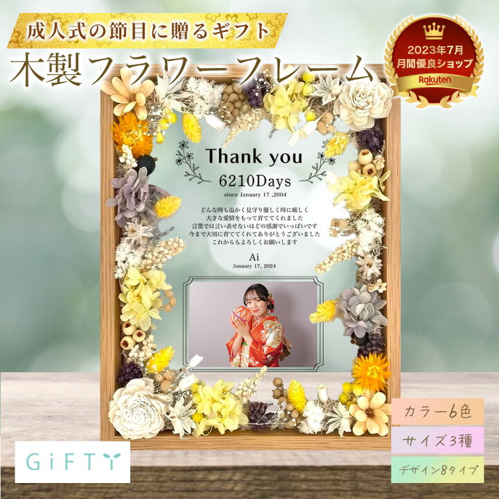 楽天市場木製フラワーフレーム 子育て感謝状 i25-2成人 成人式 両親 父親 母親 サプライズ プレゼント ギフト 写真 花束プリザーブドフラワー 前撮り フォトフレーム フォトパネル 感謝 写真 親 思い出 20歳 二十歳 : GiFTY SHOP。