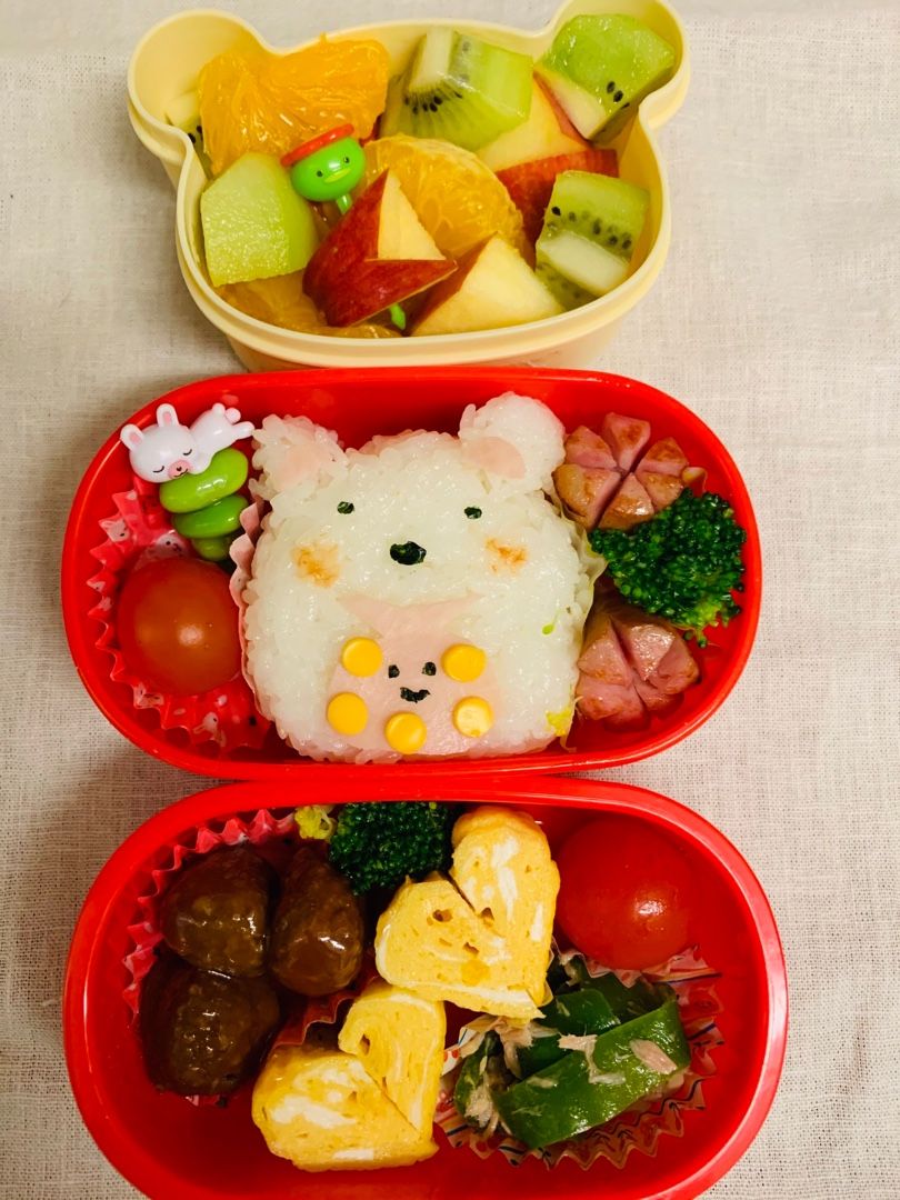 お弁当⋈ すみっこしろくまハッチ弁当 本日ご紹介するのは @michiyo0815 さんの投稿です🍀 ▸▸▸Fri.April.14.2023 おはようございます♡ この前の、お兄ちゃんのお弁当🍙 すみっコしろくまハッチ🐝 これで幼稚園弁当はしばらくお休みです☺︎次からは2つ。