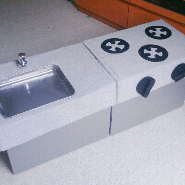ダンボールで作る!本格ままごとキッチン。