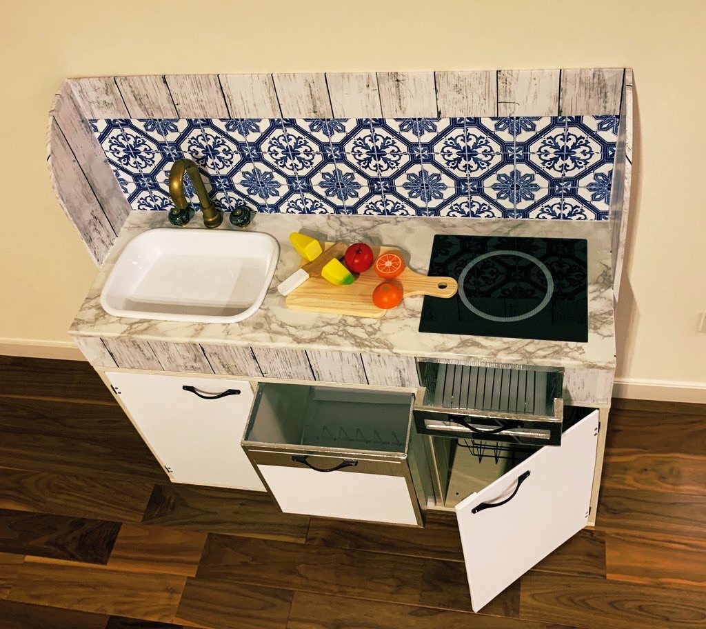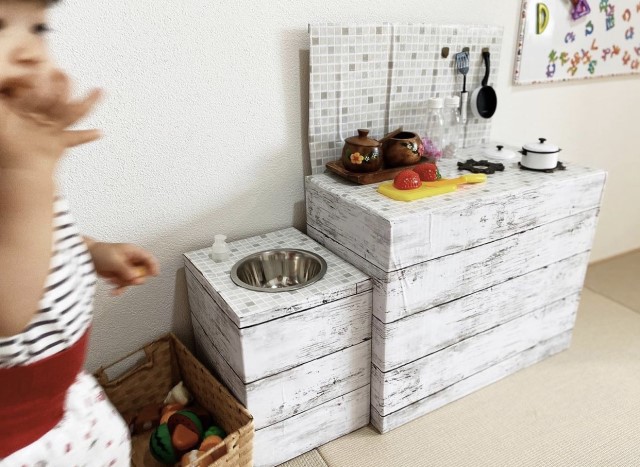 ダンボールと100均を駆使して作った、娘のための「おままごとキッチン」がステキ 「天才すぎ」「めっちゃオシャレ」と驚きの声 1 2ねとらぼ。