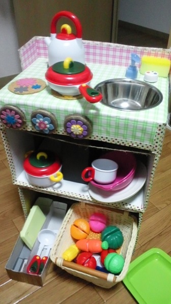 手作りおもちゃ:ダンボールキッチン - 私と家族の道標。