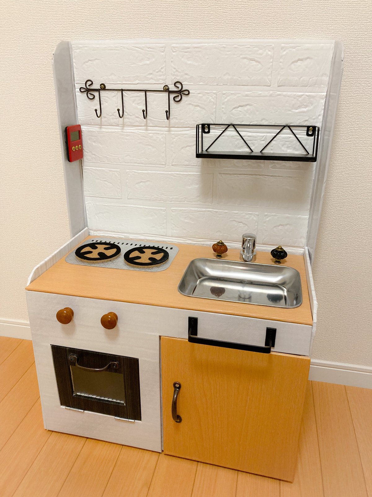 ダンボールキッチンの作り方〜パーツ100均グッズで楽しく手作り+。*・♪。