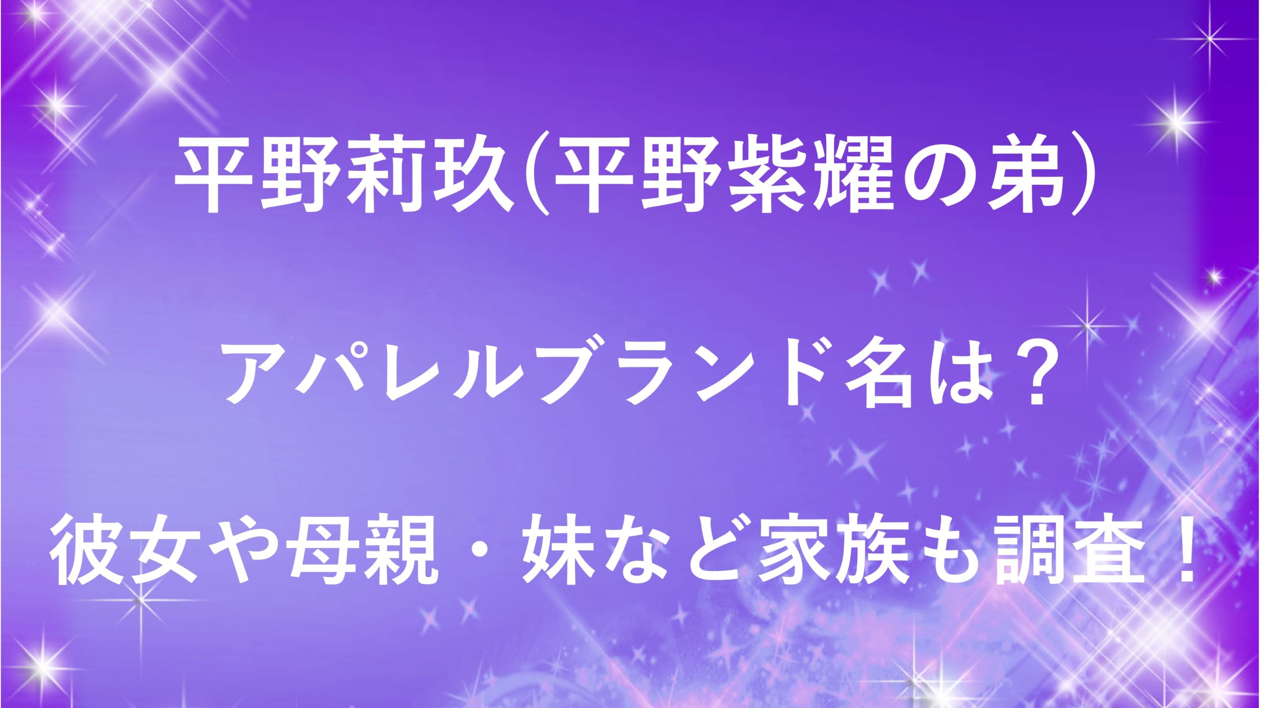 顔画像 平野紫耀の家族構成まとめ!母子家庭で弟は莉玖で23歳下の妹が1人いる。
