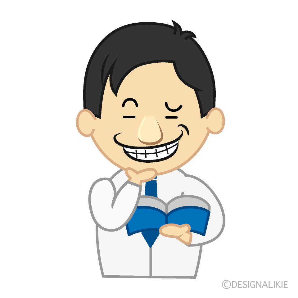 ニヤリ顔の先生イラストのフリー素材イラストイメージ。