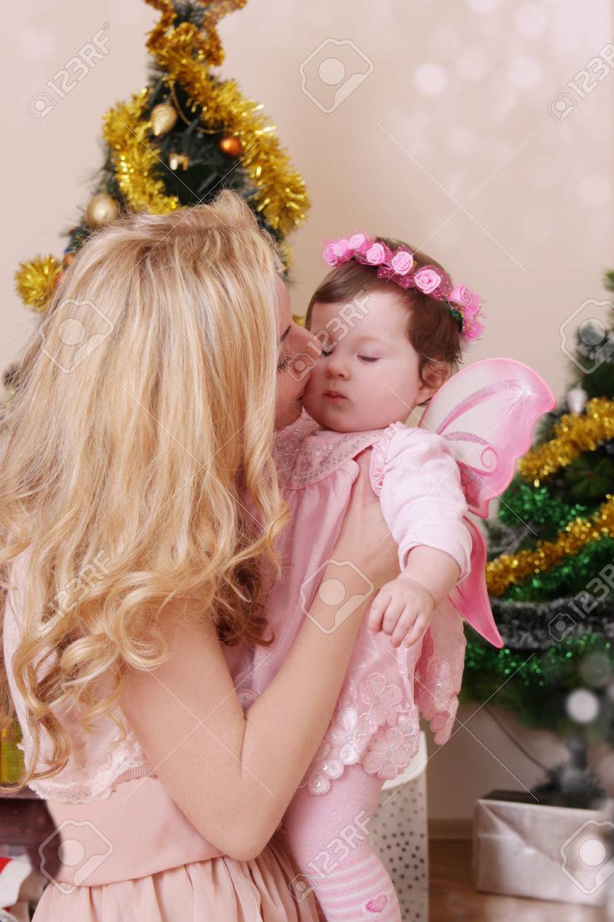 入札の母彼女の赤ちゃんを着ての女の子天使のようなクリスマスにキスの写真素材・画像素材 Image 35826919。