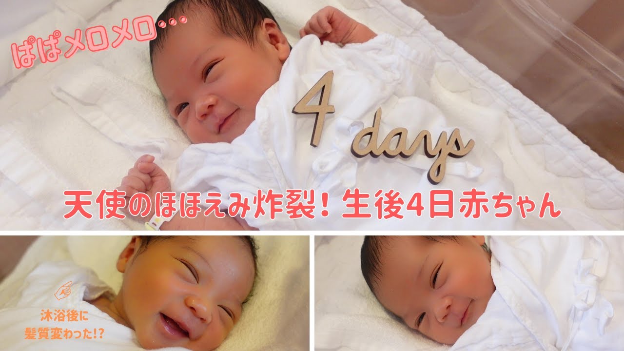 生後4日 天使のほほえみ炸裂!!新生児赤ちゃんが沐浴後にあの人気俳優風に!? - YouTube。
