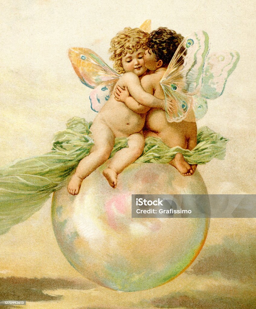 公園で愛し合い、キスをする2人のかわいい赤ちゃん天使の彫刻の縦撮りの写真素材・画像素材 Image 224320634。