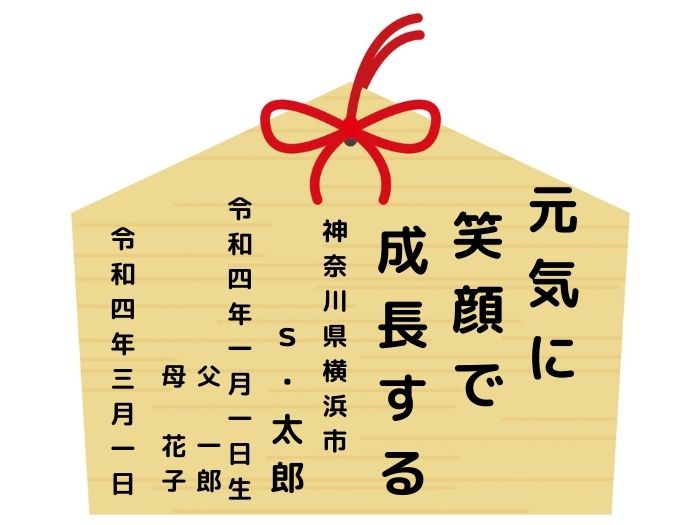お宮参りの絵馬はどうやって書くの? 例文ありちょーすけ長岡研究所。