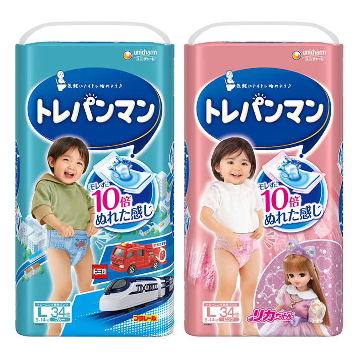 トレパンマン トイレトレーニング専用紙おむつ モレずにぬれた感じがわかる!- トレパンマン - ユニ・チャーム。