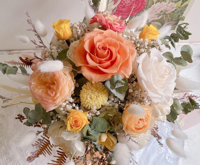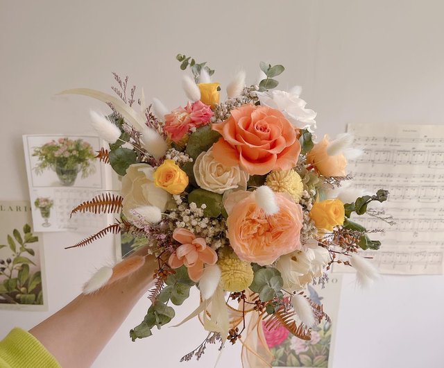 暖かいオレンジ色の記念結婚式の写真の花束結婚式の不滅の花の花束垂直花束外のショットかわいい - ショップ Lanemore ドライフラワー・ブーケ -Pinkoi。