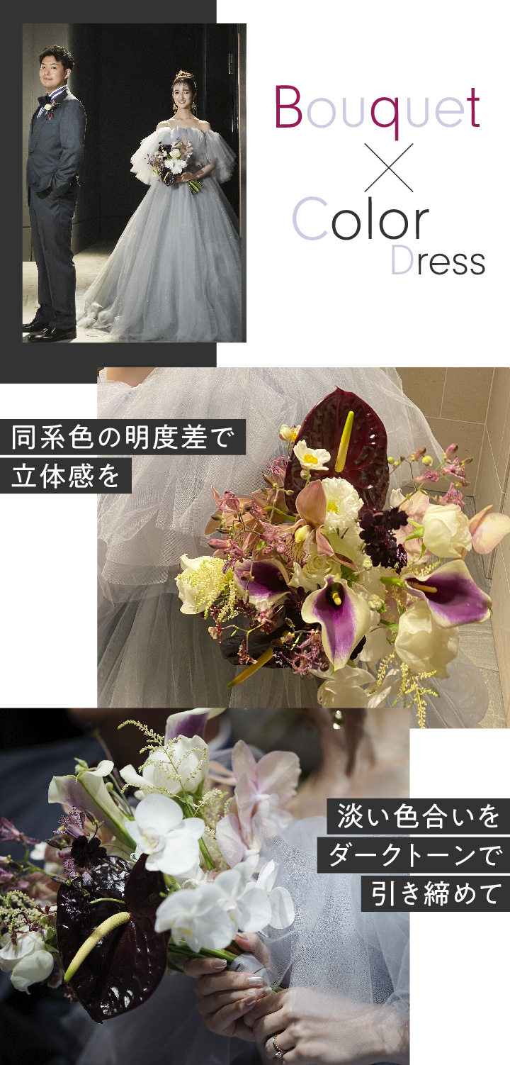 カラー+バラ - 横浜ウェディングブーケ・フラワースクールのフラワースタイル。