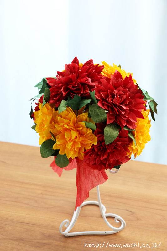結婚記念日のプレゼント「大輪に咲くダリアの和紙ブーケ・花束」生活と和紙、その新しい提案。