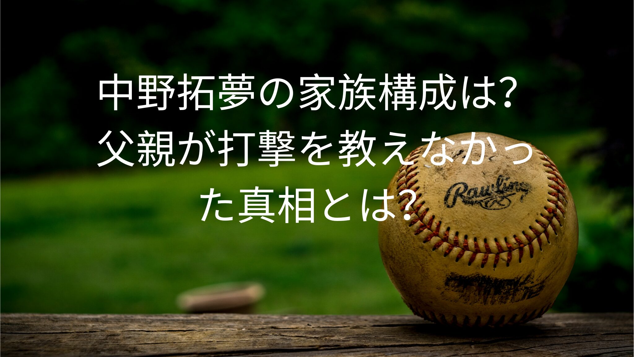 中野拓夢の家族構成は?父親が打撃を教えなかった真相とは?ファミリーメディア365。