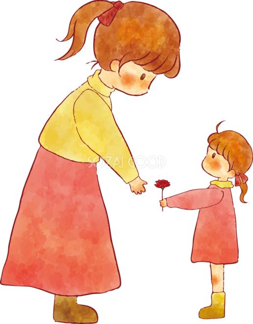 母の日 カーネーション 持つ 親子 かわいい 女の子 お母さん イラスト無料 フリー88878素材Good。
