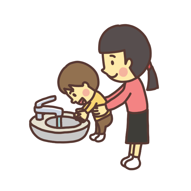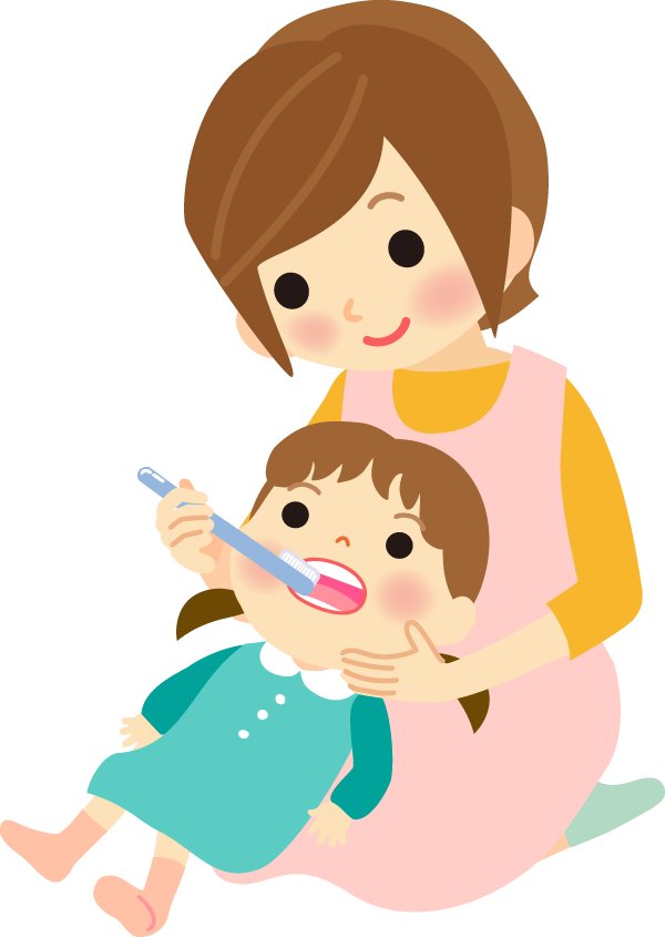お母さんが子供に歯磨きの仕上げをしてるイラスト園だより、おたよりで使えるかわいいイラストの無料素材集 イラストだより。