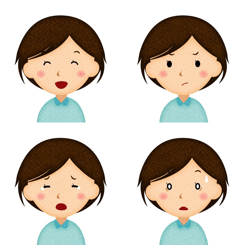 女性・お母さんの表情イラスト・喜怒哀楽の手描き素材えんぴつと画用紙。