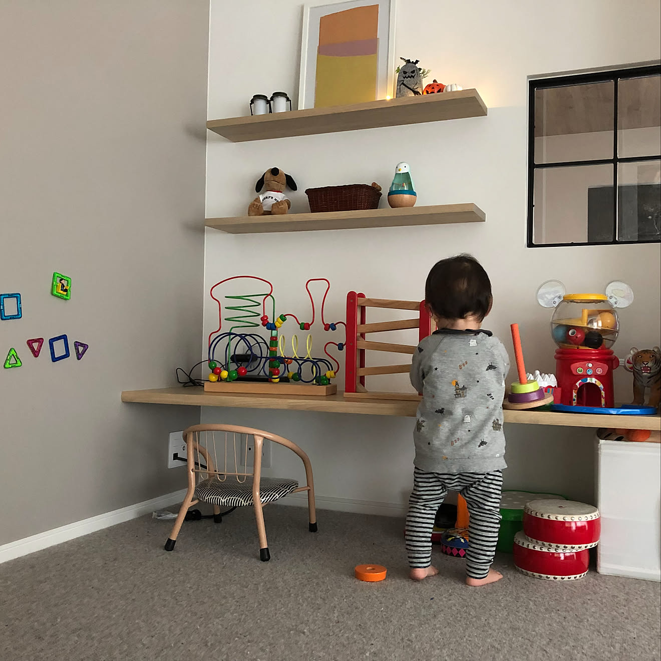 モンテッソーリ式おもちゃ棚で自分から片付けるようになるめもりっぷ。