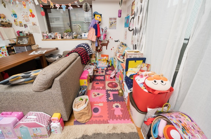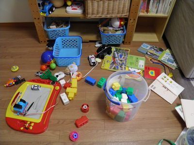 散らかるおもちゃ 1歳児のいるおうちの片付け片付けコンサルティングattaatta。