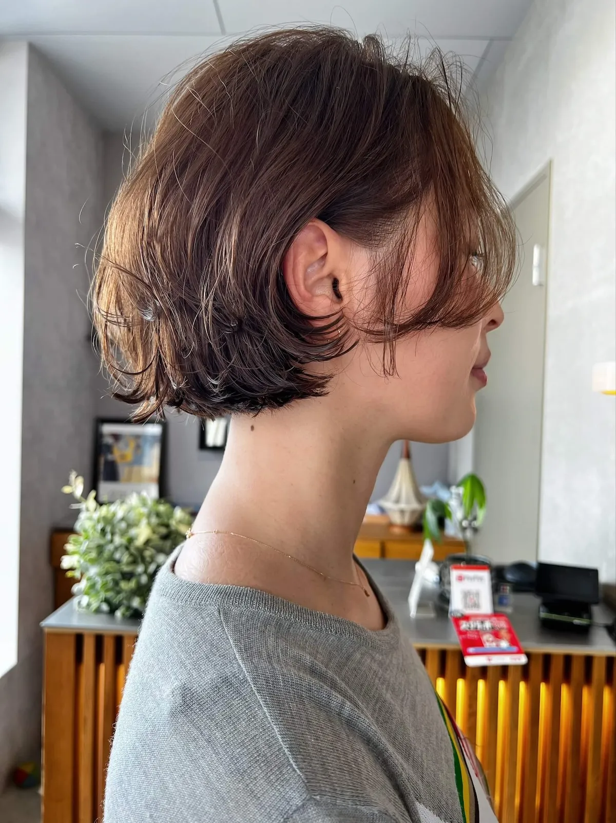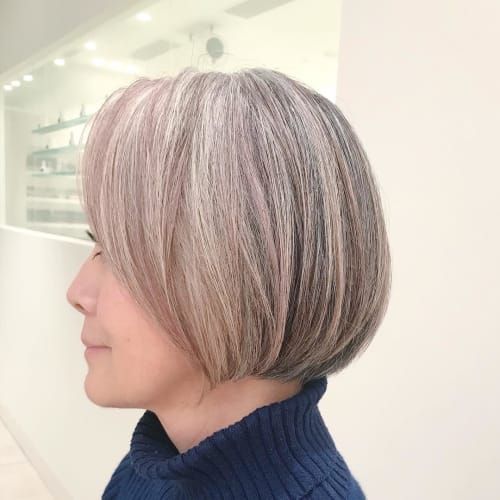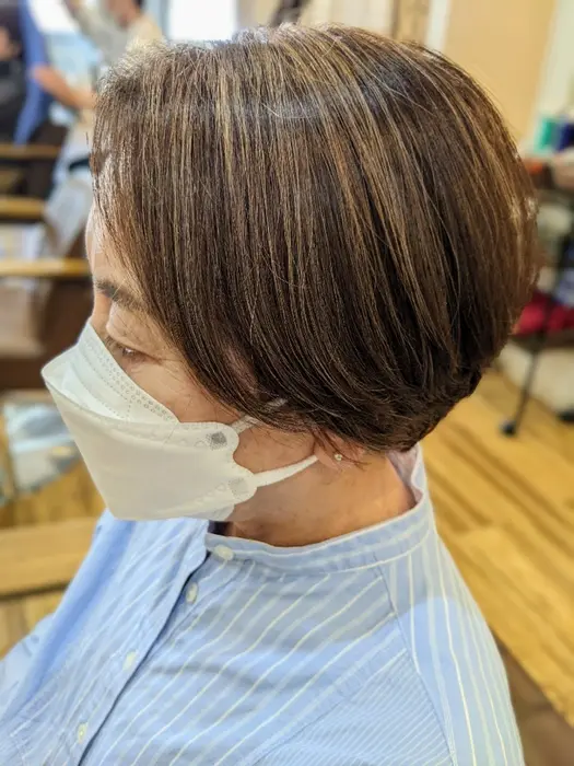 脱白髪染め!地毛を活かしたローライトカラー 丸型×ショートの。