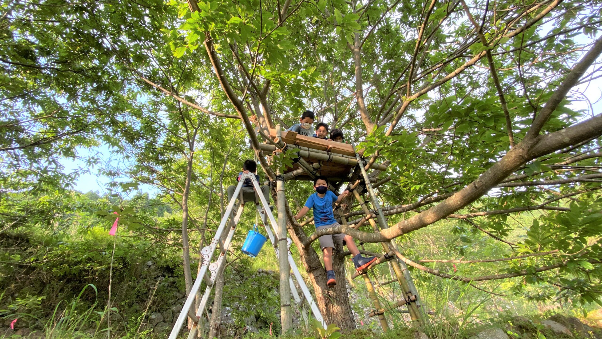 ツリーハウスをたてよう ひみつ基地であそぼうNPO法人 子どもアイデア楽工こどもあいであがっこう。